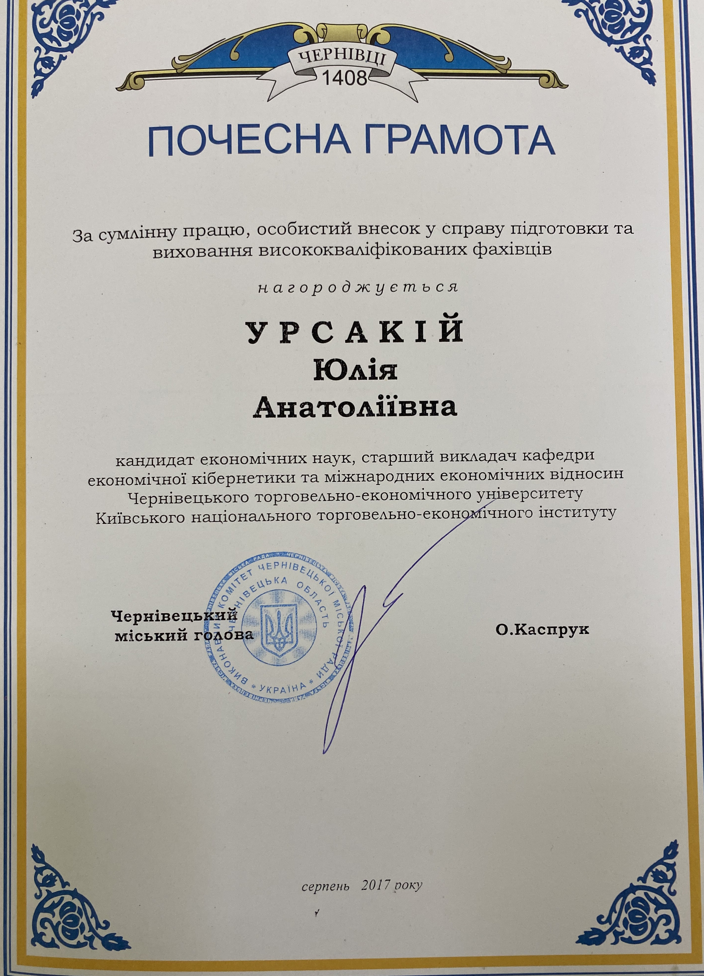 Урсакій Юлія Анатоліївна