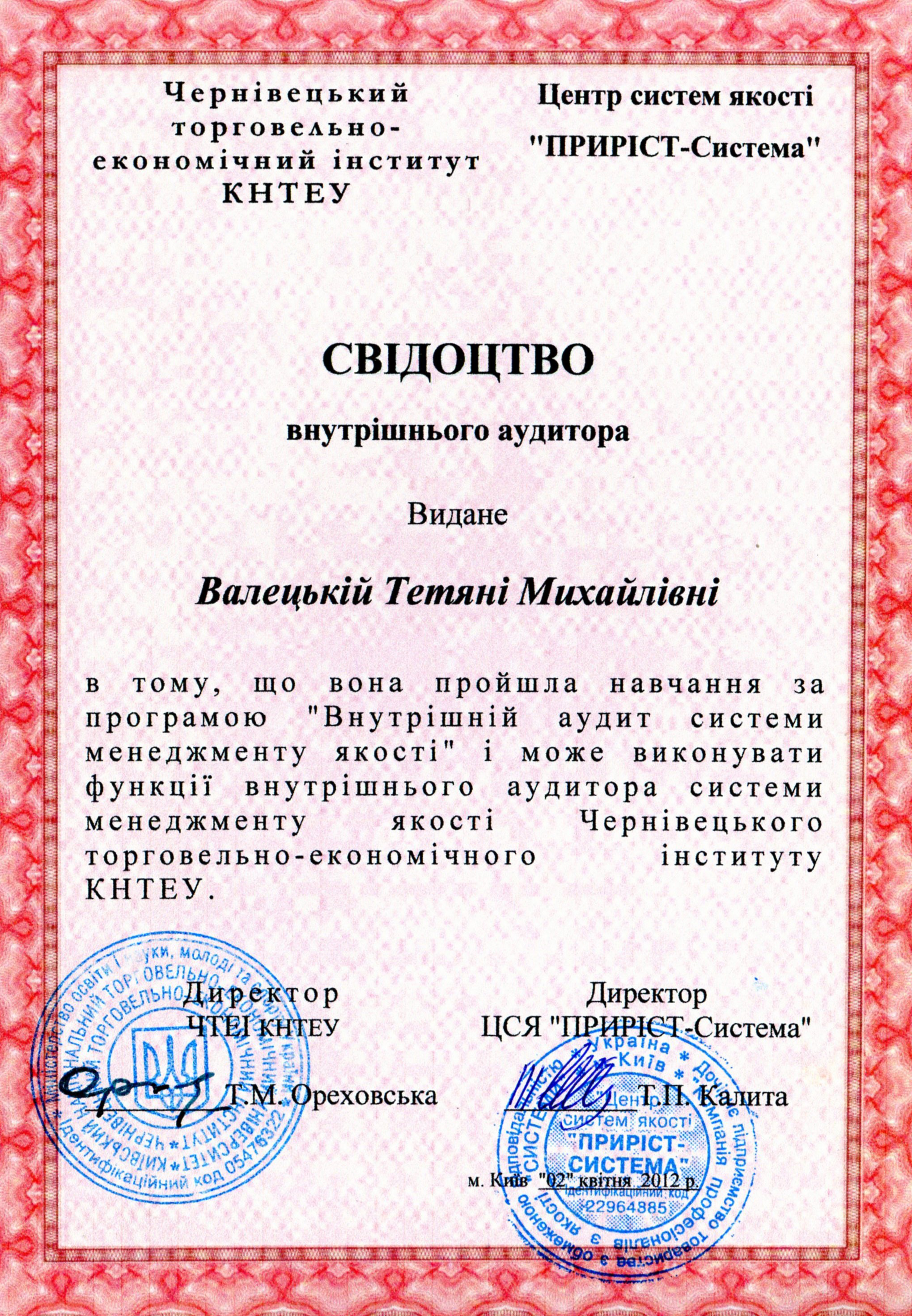 Валецька Тетяна Михайлівна