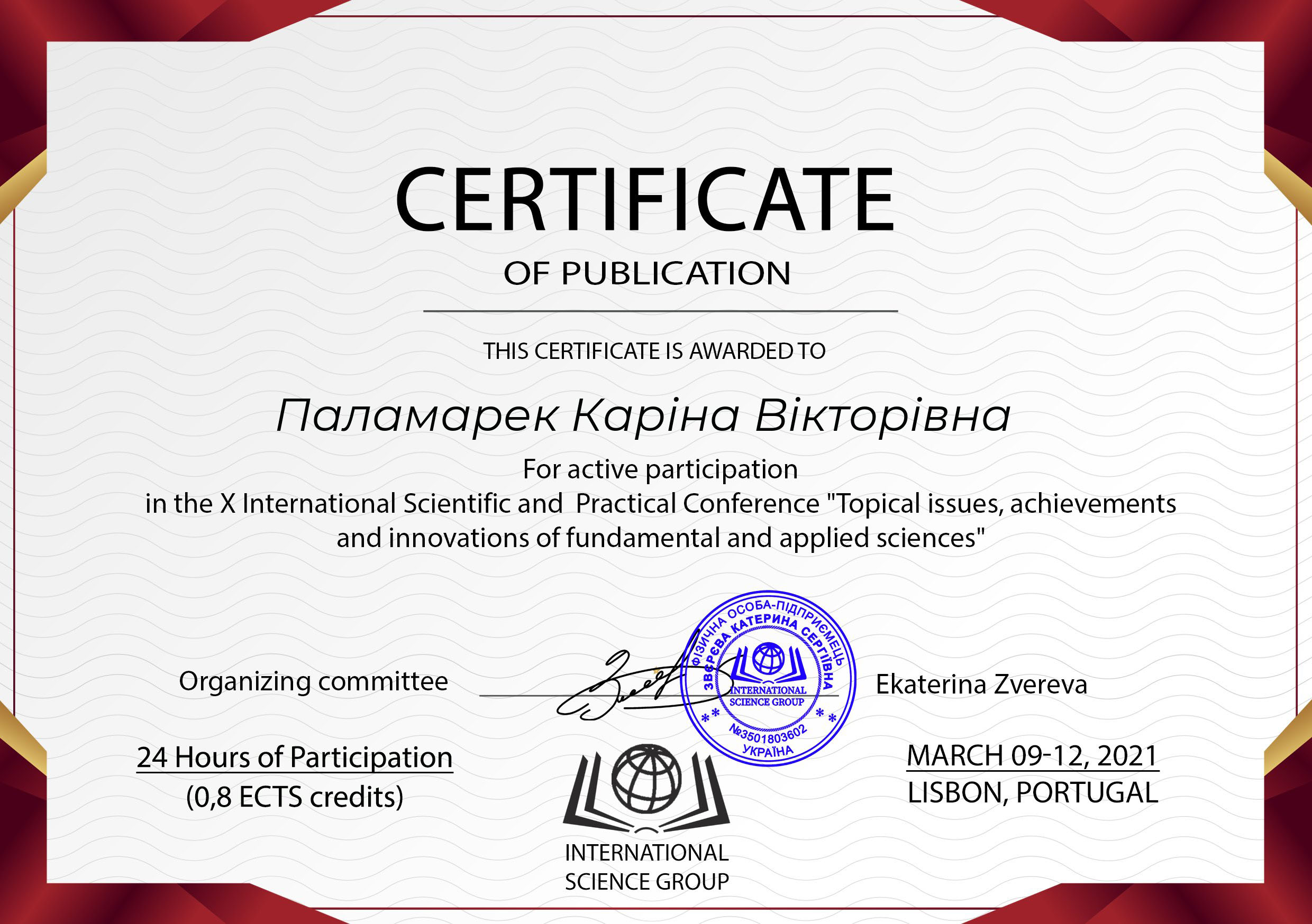 Паламарек Каріна Вікторівна