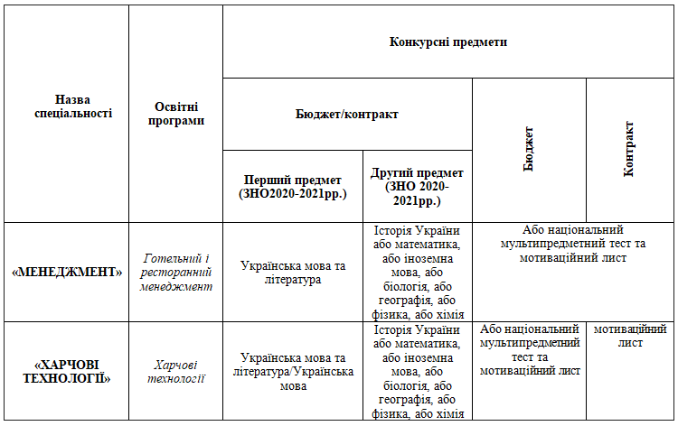 ПЕРЕЛІК КОНКУРСНИХ ПРЕДМЕТІВ СЕРТИФІКАТІВ ЗНО/НМТ У 2023 р.